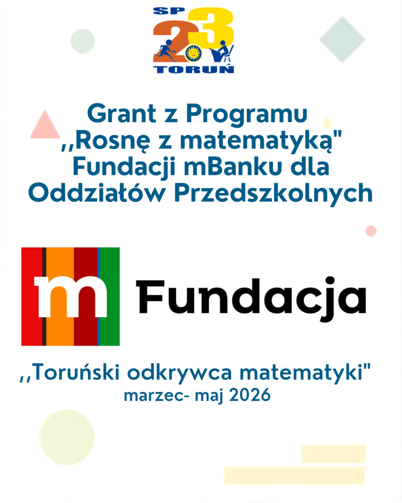 Aby przekazać 1,5% podatku na rzecz Szkoły Podstawowej nr 23 w Toruniu, należy w zeznaniu PIT (część dotycząca 1,5%) wpisać numer KRS: 0000121592 (Toruńskie Stowarzyszenie Pomocy Szkole), a w rubryce „Cel szczegółowy” wpisać: SP 23 Toruń oraz dane placówki.