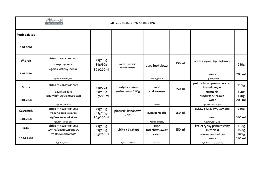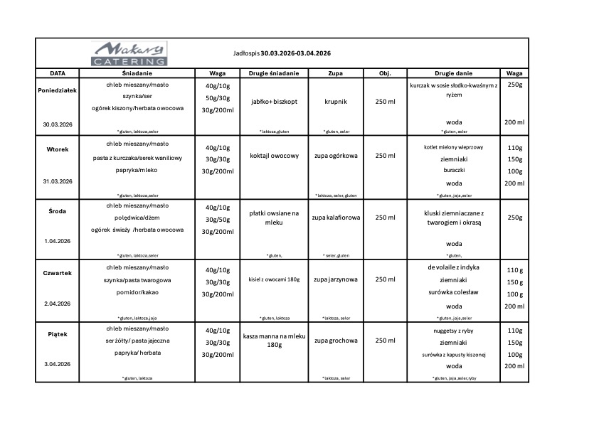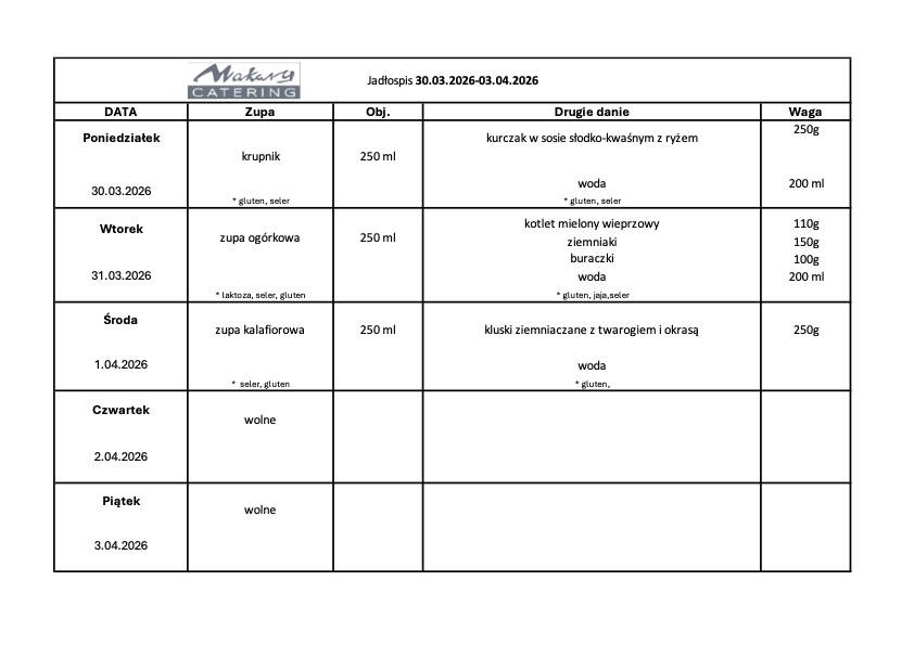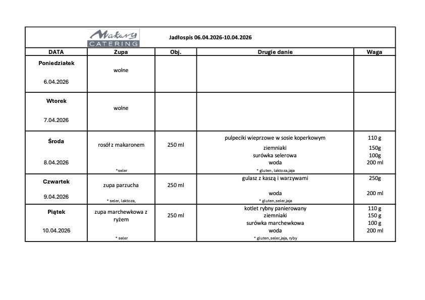 posiłki dostarcza firma Makary Catering