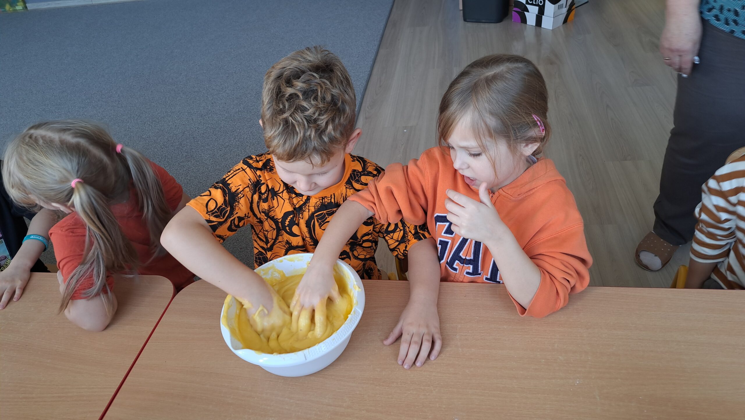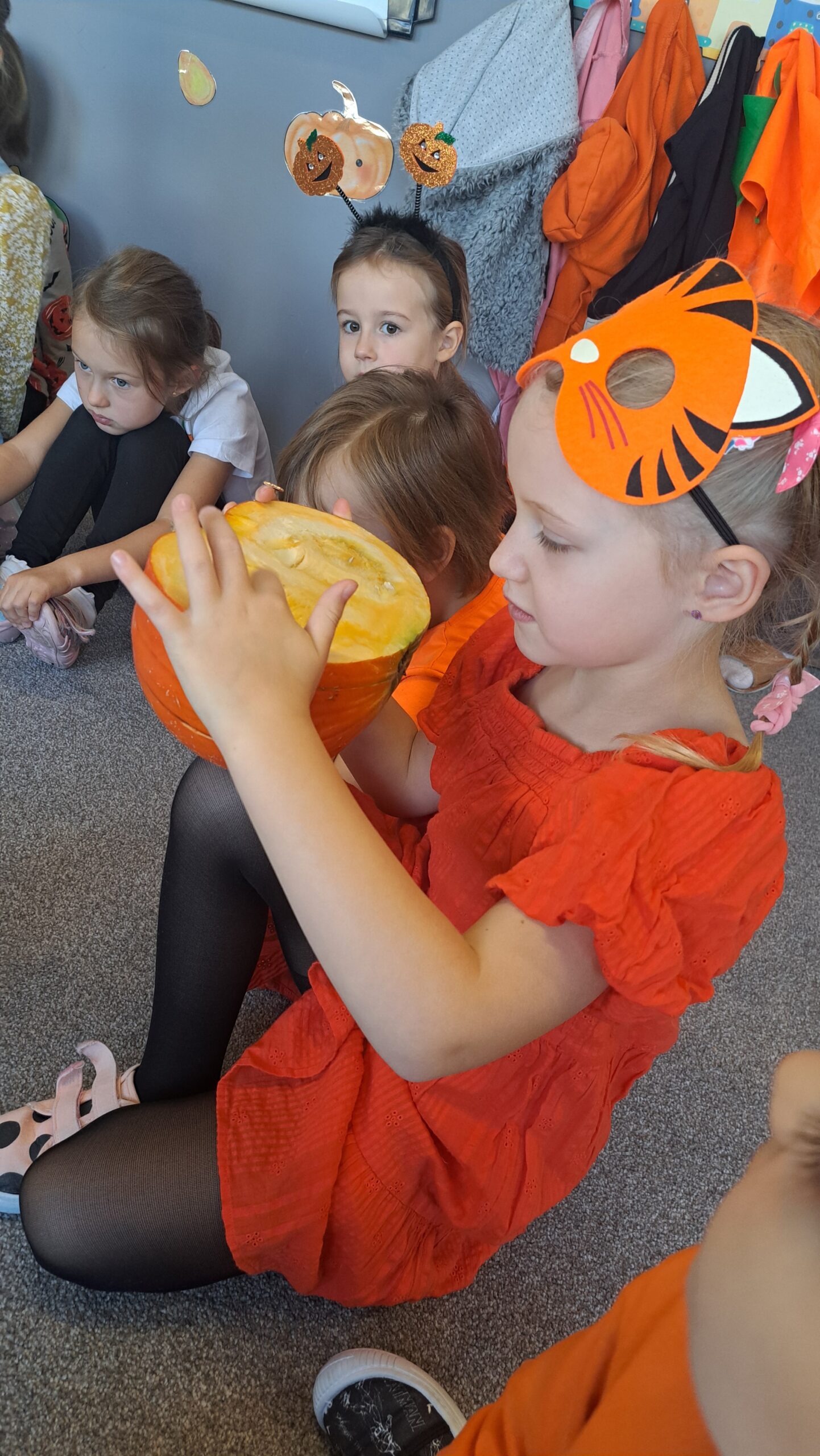 W miniony piątek królowała dynia- dzieci poznawały ją z bliska, sprawdzały jaka jest w dotyku, jak pachnie i co kryje…