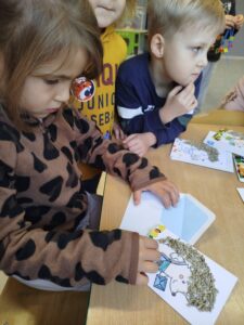 16 października w grupie „Słoneczka” świętowaliśmy Dzień Poczty Polskiej. Dzieci rozmawiały o tym, jak wygląda praca na poczcie i jakie etapy musi przejść przesyłka, zanim trafi do adresata. W ramach zajęć była również zabawa z kodowaniem w formie prostego sudoku, która pozwoliła połączyć pocztową tematykę z logicznym myśleniem. Na koniec każde dziecko wykonało własną kartkę, a następnie wspólnie wysłaliśmy nasze pocztowe pozdrowienia. To był dzień pełen ciekawostek i radosnej twórczości!