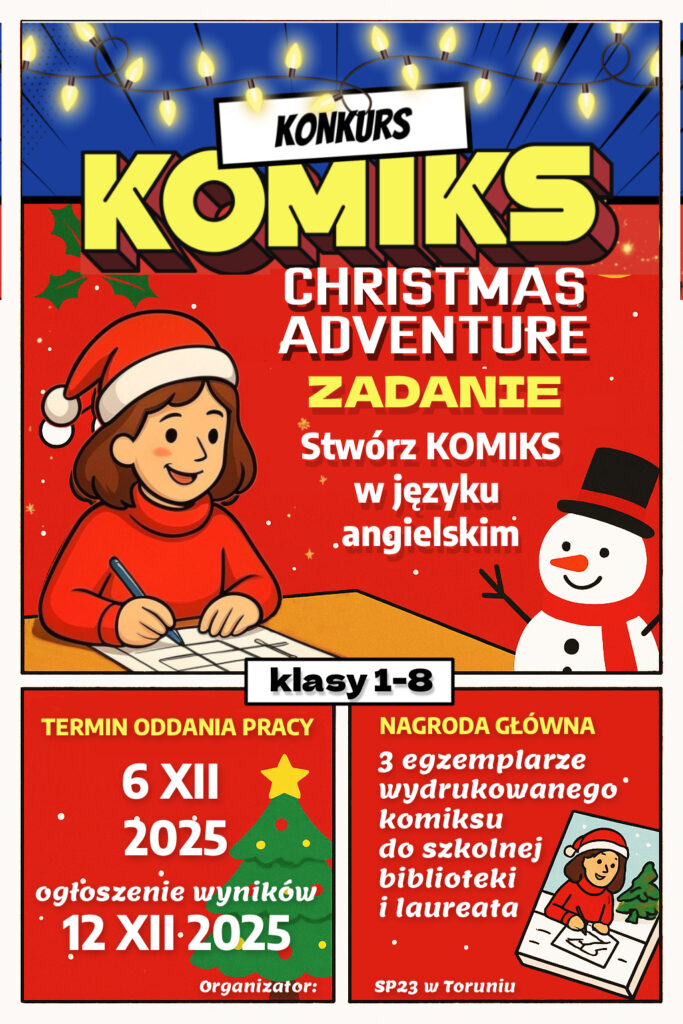 Przedmiotem konkursu jest wykonanie komiksu w języku angielskim o tematyce świątecznej, pt. „Przygoda świąteczna / Christmas Adventure”, przedstawiającego wymyśloną przez autora historię.
