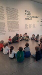 Dnia 07 października Słoneczka wybrały się do Centrum Sztuki Współczesnej na wystawę poświęconą filmowi ,,Wizje Czasu" Bill Violi. Dzieci wzięły udział w zajęciach edukacyjnych poświęconych sztuce współczesnej i technologii wideo oraz w warsztatach plastycznych, podczas których stworzyły historyjkę obrazkową.