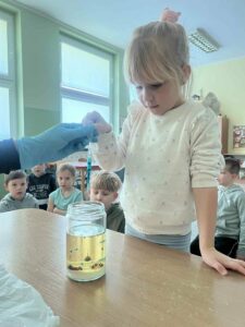 Podczas andrzejkowych zabaw przedszkolaki przeniosły się do świata magii, czarów i niespodzianek. Dzieci brały udział w tradycyjnych wróżbach oraz eksperymentach, które pobudzały wyobraźnię i ciekawość.